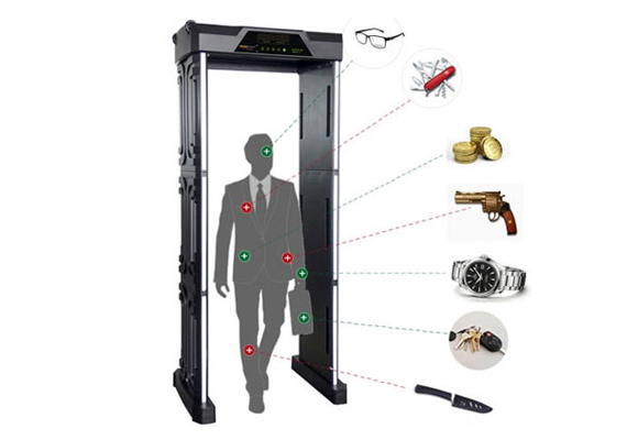 A metal detector is an electronic instrument which detects the presence of metal. Metal detectors are useful for finding metal hidden within objects, or metal objects buried underground. A Door Frame Metal Detector (DFMD) as the name suggests is a metal detector fitted in a door to detect metal that may be hidden on the body of the person passing through this door. This is also known as a “walk through” metal detector. These are used for security screening at access points in prisons, courthouses, and at airports to detect concealed metal weapons on a person’s body.